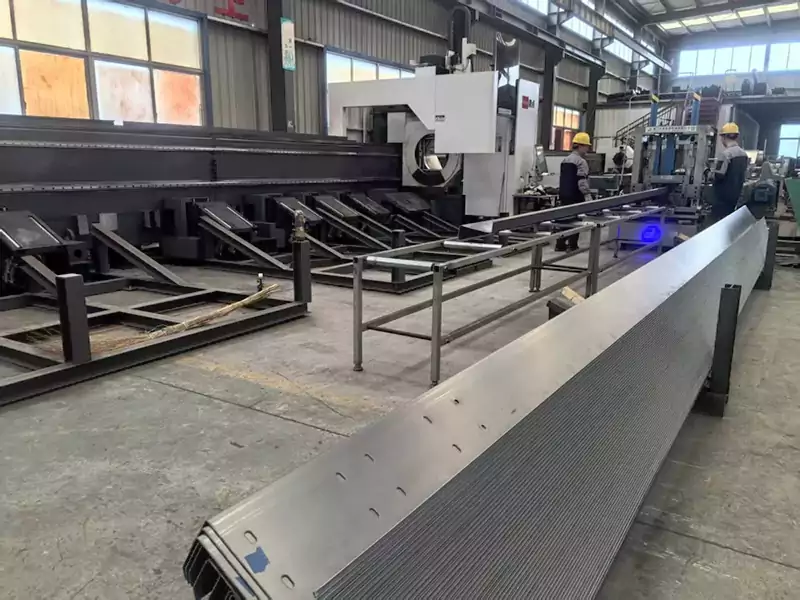 2. पंचिंग: सीएनसी पंचिंग युनिटसह सुसज्ज, हे जाळे आणि फ्लँजेसच्या मल्टी-एंगल पंचिंगला समर्थन देते, ±0.2 मिमीच्या भोक व्यासाची सहिष्णुता आणि ±0.3 मिमीच्या छिद्र अंतराची अचूकता. हे एकाच वेळी यूएस मानक सी-सेक्शन स्टील कनेक्शन पॅटर्न (जसे की सिम्पसन स्ट्राँग-टाय अडॅप्टर होल) च्या अनुरूप छिद्र देखील तयार करू शकते.