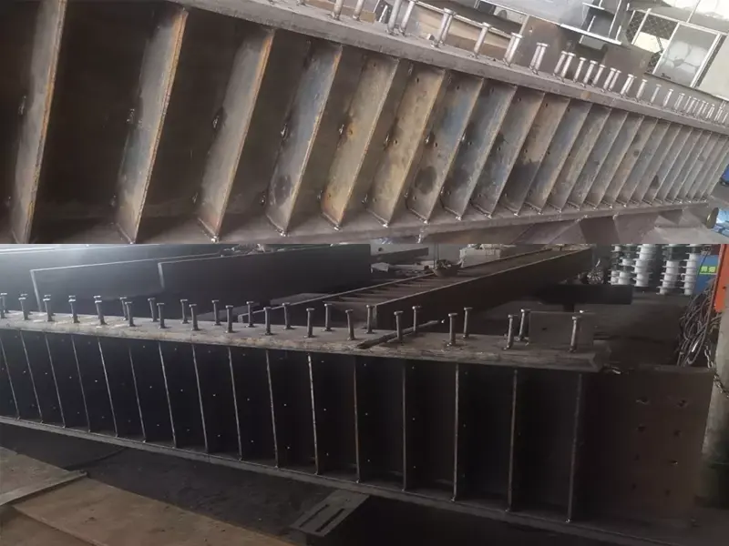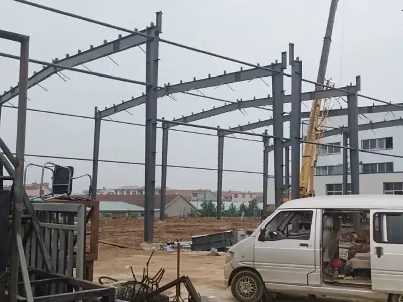 ● स्टील बीम: मजल्यावरील आणि छतावरील भार सहन करण्यासाठी फ्रेम स्ट्रक्चर तयार करण्यासाठी स्टील स्तंभ कनेक्ट करा.