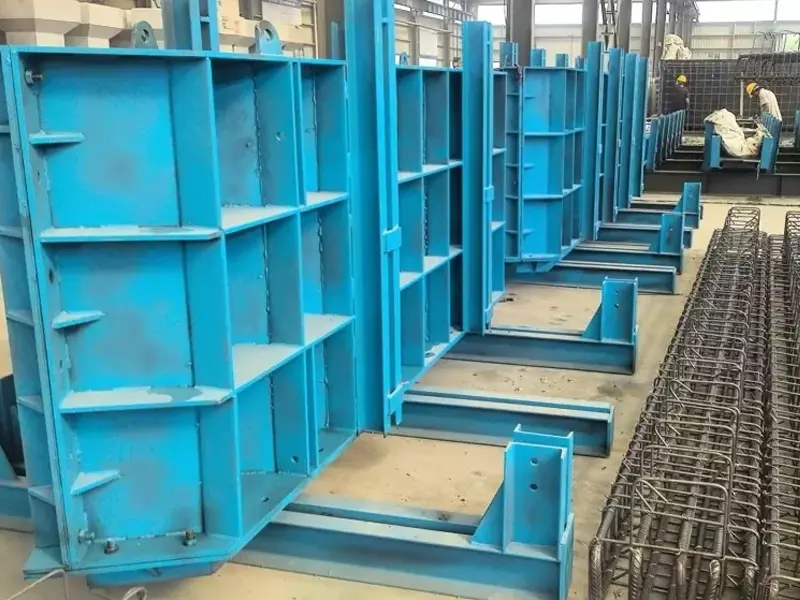 स्टील कॉंक्रिट फॉर्मवर्क स्टील प्लेट्स आणि स्टील विभागांचे बनलेले आहे, ज्यामध्ये उच्च सामर्थ्य, कडकपणा आणि मितीय अचूकता आहे. स्टील फॉर्मवर्कची गुळगुळीत पृष्ठभाग उच्च-गुणवत्तेच्या ओतलेल्या कंक्रीटची हमी देते, ज्यामुळे वारंवार वापर आणि उच्च उलाढाल होऊ शकते. प्रीफेब्रिकेटेड बिल्डिंग घटकांचे मास फॅक्टरी उत्पादन आणि मॉड्यूलर इमारतींचे बांधकाम यासारख्या मानक घटकांच्या मोठ्या प्रमाणात उत्पादनात हे वापरले जाते.