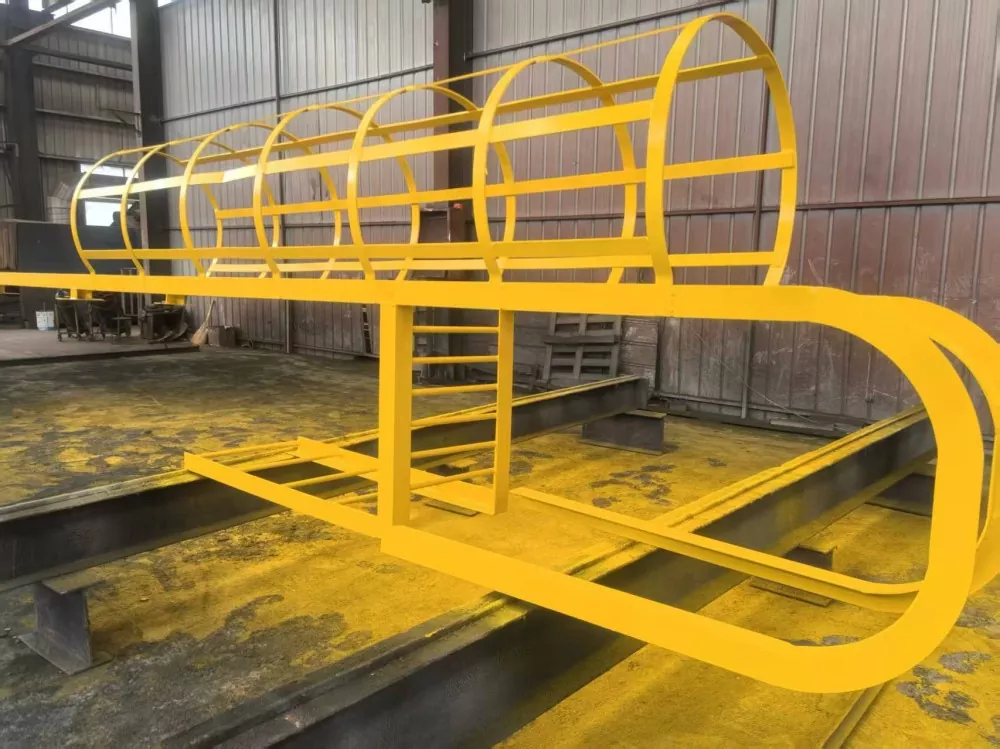 वेल्डिंग आवश्यकता: शिडीचे बीम पूर्ण-खोली वेल्डिंग वापरून पायऱ्यांशी आणि प्लॅटफॉर्म किंवा स्ट्रक्चरल सदस्यांशी जोडलेले असले पाहिजेत. जोडणीची उंची कनेक्ट केलेल्या घटकाच्या किमान जाडीच्या 0.7 पट पेक्षा कमी नसावी आणि स्लॅग समावेश आणि छिद्रापासून मुक्त असणे आवश्यक आहे. गंभीर सांधे देखील दोष शोधणे आवश्यक आहे.