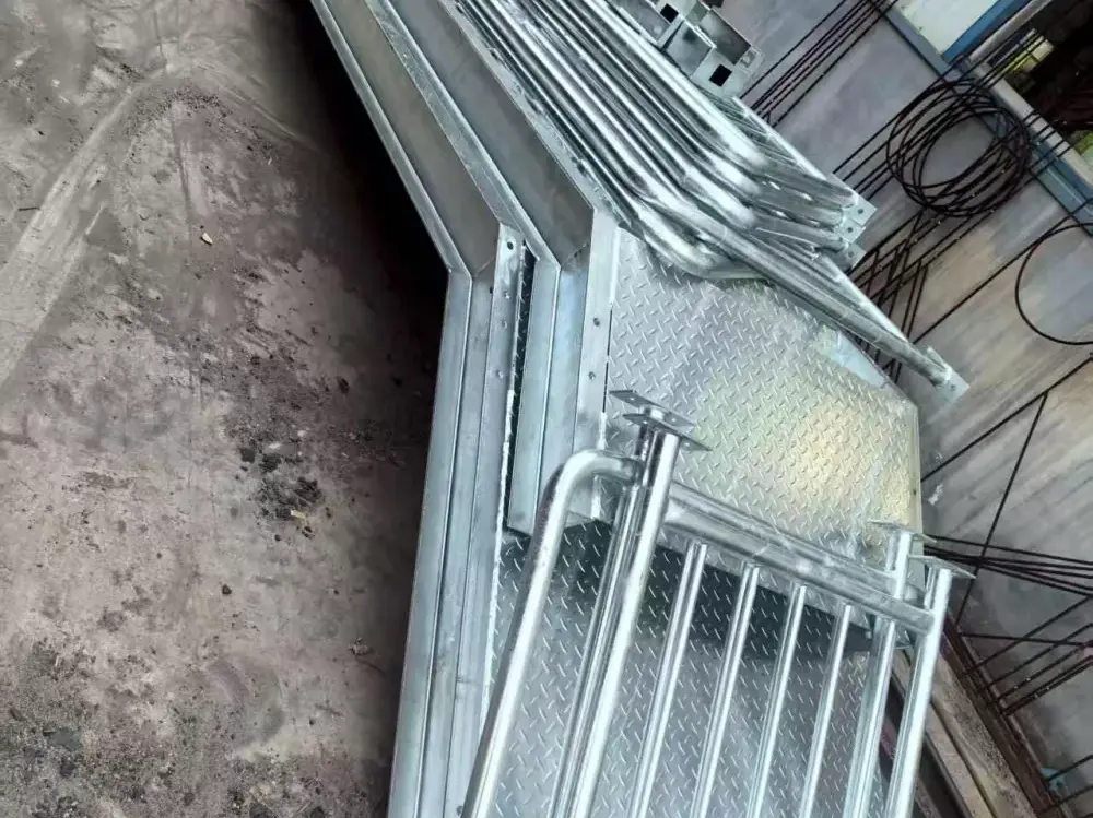 5. आमच्या पायऱ्या सानुकूल करण्यायोग्य आहेत, ज्यात गंज-प्रतिरोधक उपचार आहेत जसे की हॉट-डिप गॅल्वनाइजिंग, प्लास्टिक फवारणी आणि पेंटिंग. ते वैयक्तिक ग्राहकांच्या गरजा पूर्ण करण्यासाठी देखील सानुकूलित केले जाऊ शकतात. आम्ही A36, Q235B आणि Q355B सह विविध साहित्य ऑफर करतो.